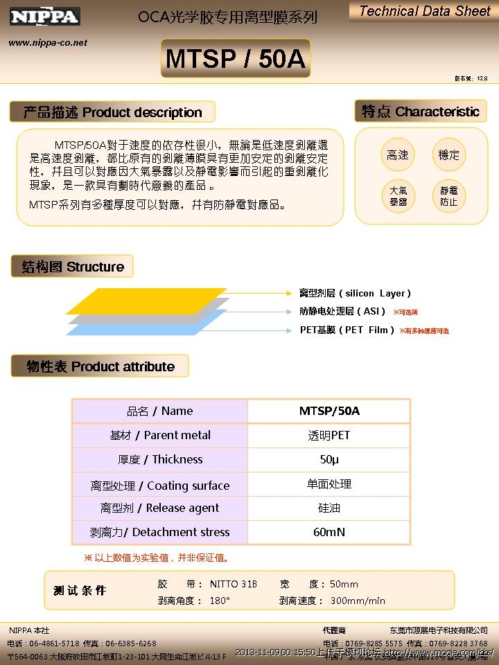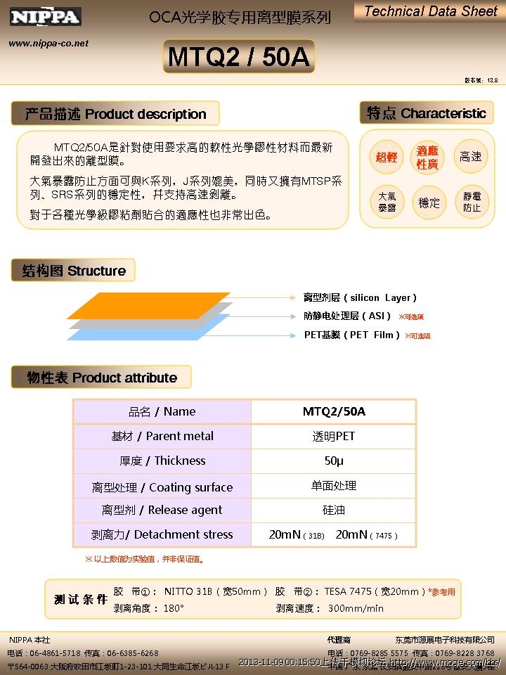以下为NIPPA公司开发,客户选用*多的两款OCA光学胶专用离型膜的资料,提供给各位参考选择。
