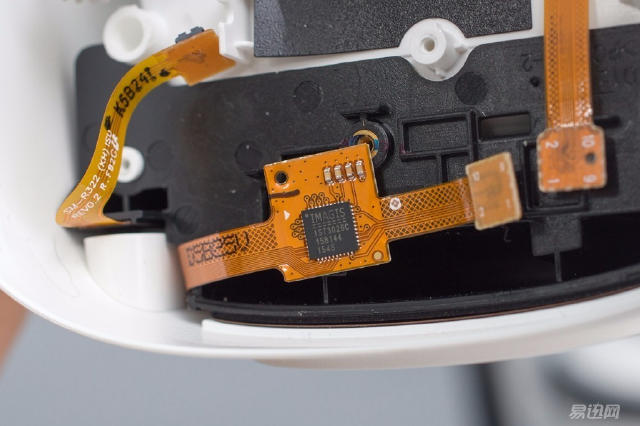 这是位于中间的人体感应器,排线埋在边上这一片黑色绝缘层下面。