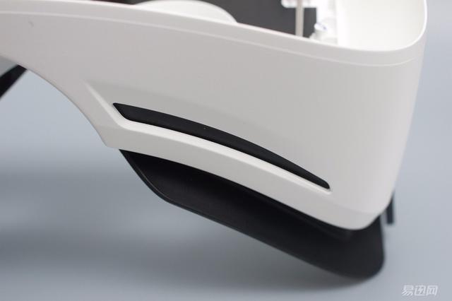 这块黑色塑料板可以直接取下来,并没有做防尘措施,而开口都是在VR的底部,热气总是会上升的,因此GearVR的防雾效果并不算好。
