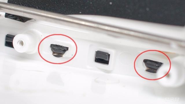 从内部可以看到这个黑色长条并没有与外壳接触,而是留了一条缝。