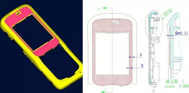 2、在装配双面胶时,可以根据双面胶外框相配的塑胶壳定位,通常 A=0.15~0.3mm。