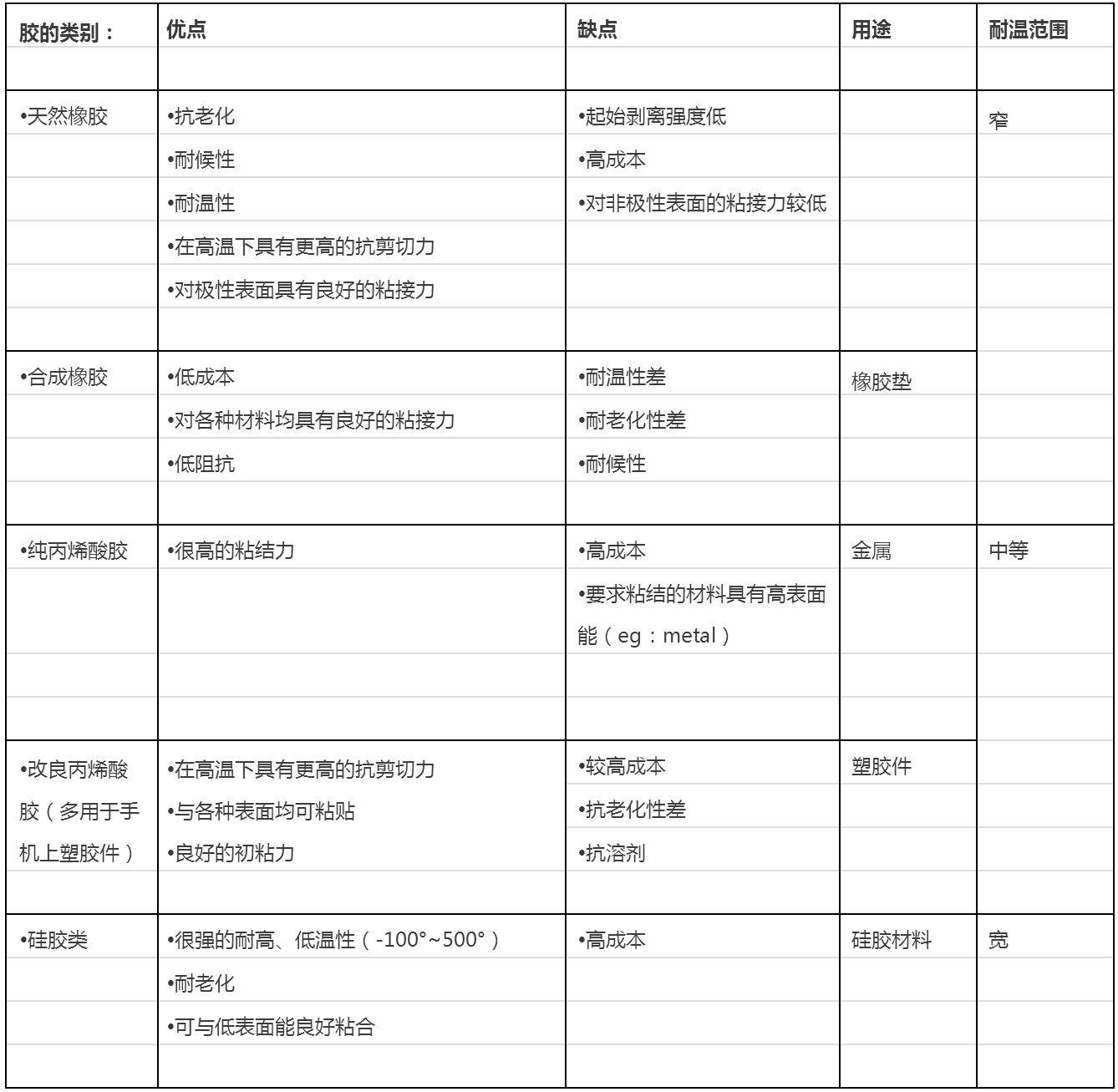 在一定粘结的面积及胶带的厚度的情况下选材: