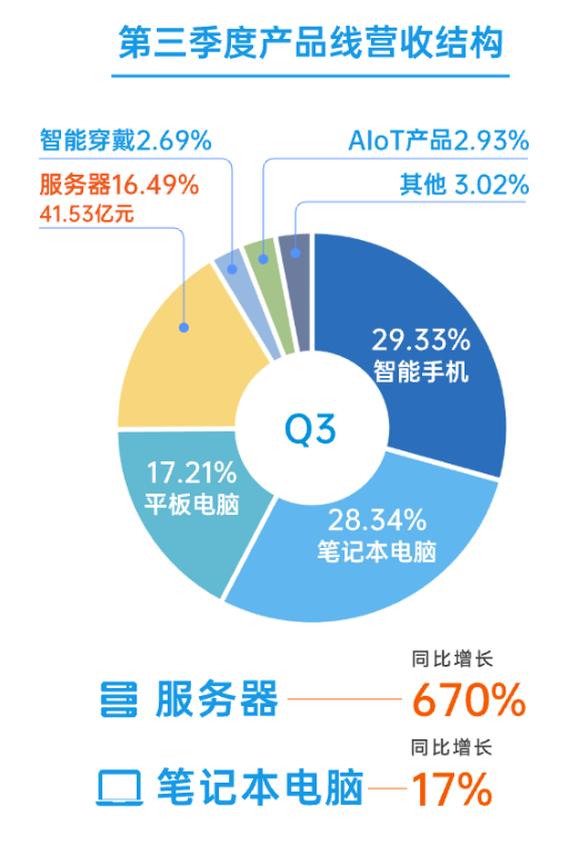 10月22日晚间,华勤技术发布的第三季度报告显示,第三季度实现营业收入251.87亿元,同比增长19.17%;归属于上市公司股东的净利润7.02亿元,同比增长17.26%。华勤技术表示,本期公司持续开拓服务器、汽车电子等新兴市场及推进产品升级,公司服务器业务处于快速发展期,实现营业收入41.53亿元,同比增长670%。
