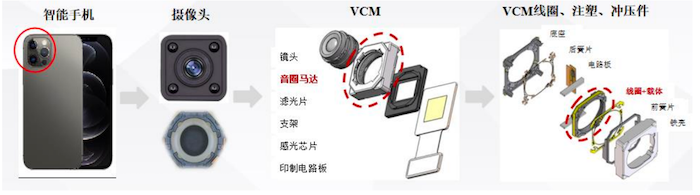 应用上,公司支架线圈产品是用于制造VCM的核心部件,VCM是智能手机自动对焦摄像头的主流配置。另一核心产品空心线圈则是用于制造线性马达的核心部件,线性马达的作用在于让手机产生振动效果,线性马达除震动功能外,还可模拟实现多种触感反馈效果。