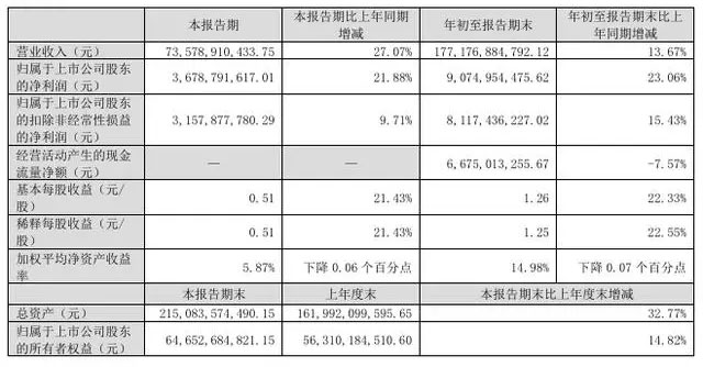10月25日晚,立讯精密发布2024年第三季度报告,公司前三季度营业收入1771.77亿元,同比增长13.67%;归属于上市公司股东的净利润90.75亿元,同比增长23.06%。