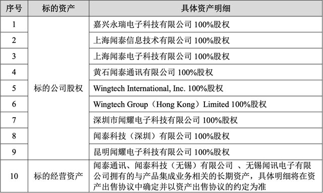 12月30日,闻泰科技发布公告称,公司与立讯有限公司(Luxshare limited,以下简称“立讯有限”)签署了《出售意向协议》,拟将公司及控股子公司拥有的与产品集成业务相关的9家标的公司股权和标的经营资产(标的公司股权与标的经营资产合称为“标的资产”)转让给立讯有限或其指定方。立讯有限系A股上市公司立讯精密工业股份有限公司的控股股东。