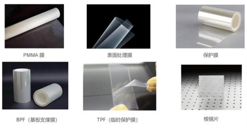 偏光片的核心原材料由“五膜一胶”组成。“五膜”分别是保护膜、表面处理膜、PVA膜、补偿膜(PVA保护膜)和离型膜,“一胶”指的是PSA压敏胶。目前,上述每一种材料的国产化率都低于10%,甚至1%。