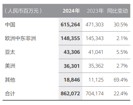 在区域市场方面,受益于数字化、智能化、低碳化转型,中国市场总体实现销售收入人民币 6152.64亿元。欧洲中东非洲地区实现销售收入人民币148.36亿元。亚太地区总体实现销售收入人民币 433.06亿元,美洲地区销售收入人民币363.01亿元。