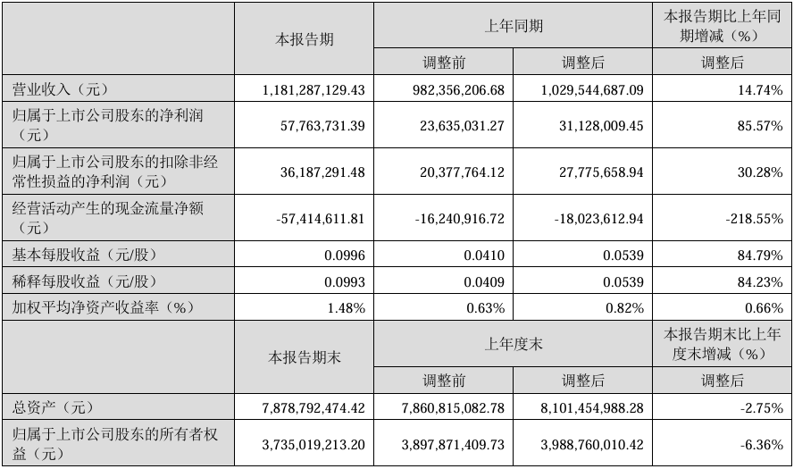 4月15日,飞荣达发布2025年第一季度业绩报告称,该季度实现营业收入1,181,287,129.43元,同比增长14.74%;归属于上市公司股东的净利润为57,763,731.39元,比上年同期上升85.57%;扣除非经常性损益后的净利润为36,187,291.48元,比上年同期上升30.28%;基本每股收益0.0996元/股。