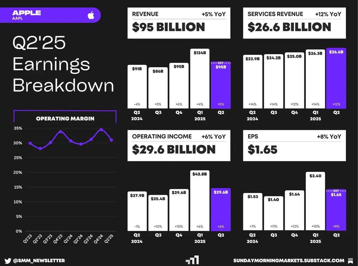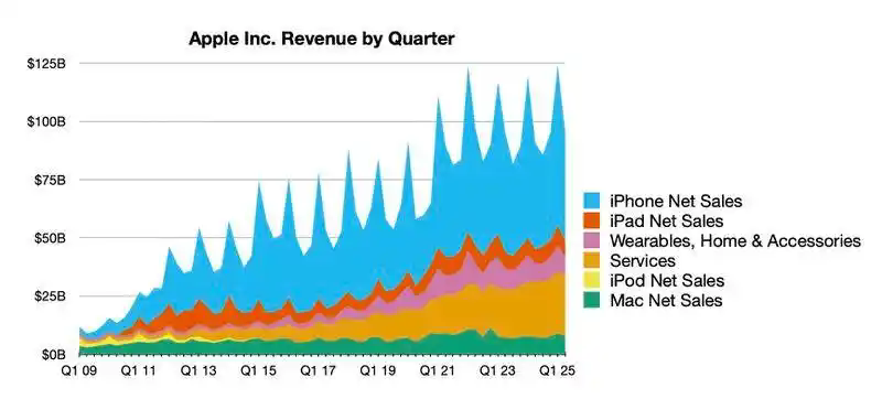 5月2日消息,苹果公司发布 2025 财年第 2 财季(截至 3 月 29 日)的财报业绩,该季度营收为 954 亿美元(备注:约合 6933.64 亿元人民币),同比增长 5%。