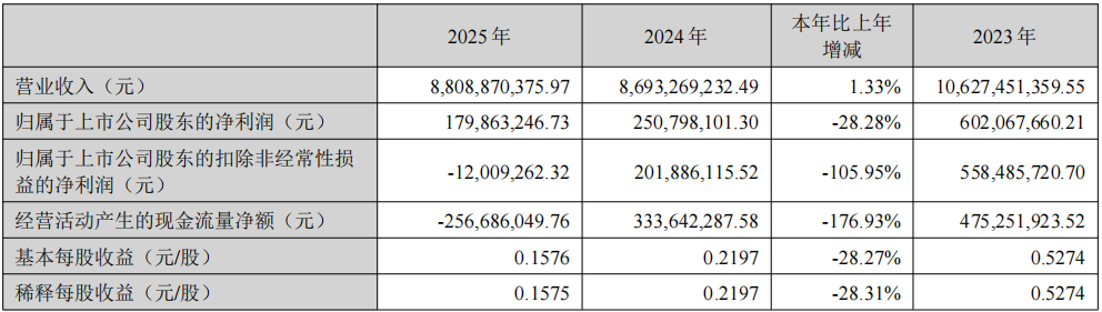 3月27日,创维数字股份有限公司发布2025年年度报告。报告期内,公司实现营业收入88.09亿元,同比增长1.33%;归属于上市公司股东的净利润为1.8亿元,同比下降28.28%;扣除非经常性损益后的净利润为亏损1,200.93万元。