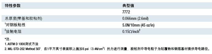 3MTM 7772胶带典型应用于需要有ESD接地和电磁屏蔽的场合,比如设备、器件及屏蔽屋等的电磁干扰屏蔽或接地。7772的双面带导电胶特性亦可用于两个表面的导电性及物理粘接。