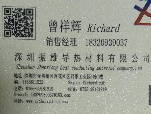 详细说明:ZX-UTP100系列导热硅胶垫片,是使用硅胶与导热陶瓷填料,以玻璃纤维布为补强材料,经特殊工艺加工而成。是**款非常柔软,具有优异的可压缩性,可与电子元器件紧密接触,有效降低界面热阻,导热性能表现**佳。